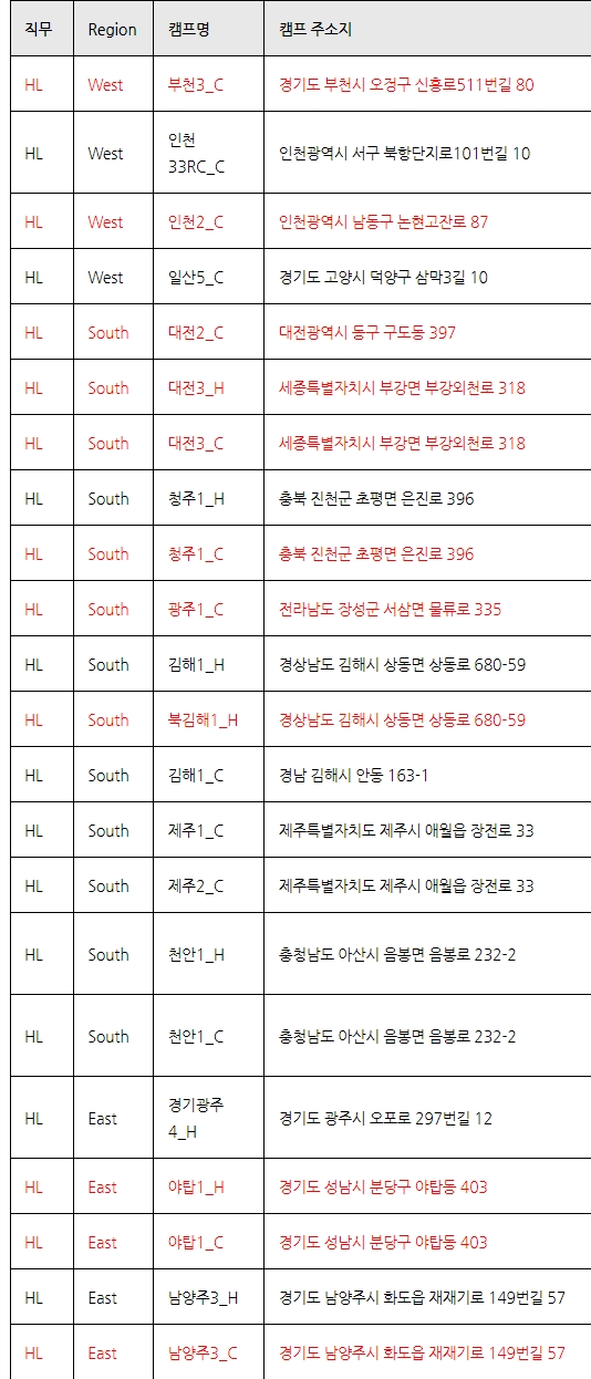 - 회사 사정에 따라 희망 근무지가 아닌 곳으로 배정될 수 있습니다.